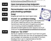 Zondag 13 juli start met koffie en houden we het traditioneel met onder andere het kaatsen. En ook de fietstocht komt terug! We voegen nieuwe elementen voor verschillende leeftijden toe aan het programma. We sluiten het feest af met de klanken van een troubadour.