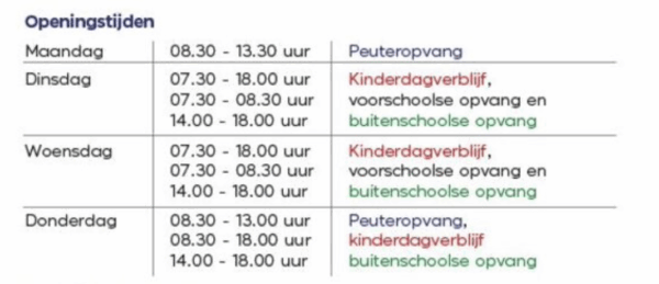 De opvang is open de gehele dag open op dinsdag, woensdag en donderdag.