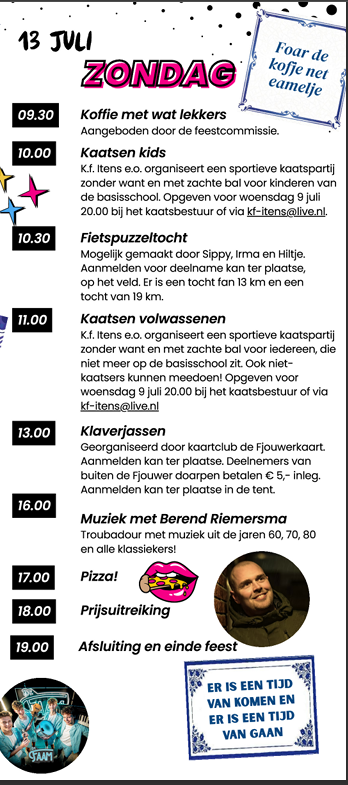 Zondag 13 juli is alweer de laatste dag van het feest!